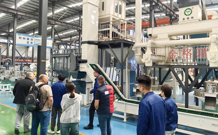 Subsequently, the delegation moved to the pellet machine exhibition hall. Here is a display of various pellet machine products developed and produced by the manufacturer over the years, from classic models in the early days to innovative models now, showcasing the manufacturer’s continuous breakthroughs and progress in pellet machine technology. The technicians provided a detailed introduction to the performance characteristics, applicable scenarios, and technical advantages of each device, and customers occasionally raised questions and engaged in discussions on some technical details.